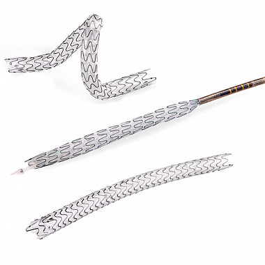 - Kokonaan päällystetty ja valmiiksi asettimeen ladattu nitinol-stentti