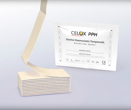 CELOX PPH – synnytyksen jälkeisen massiivisen verenvuodon nopeaan tyrehdyttämiseen tarkoitettu hemostaattinen tamponi.