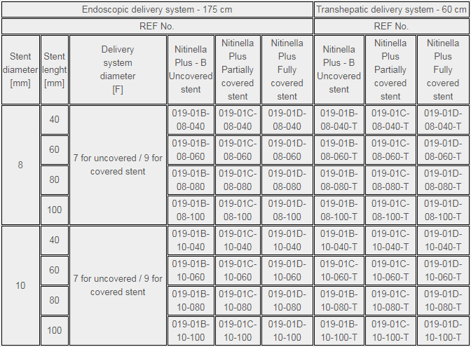 Ninitella Plus valmiiksi ladattu itsestään laajeneva nitinoli-sappitiestentti. Saatavilla kokonaan päällystettynä, osittain päällystettynä tai päällystämättömänä.